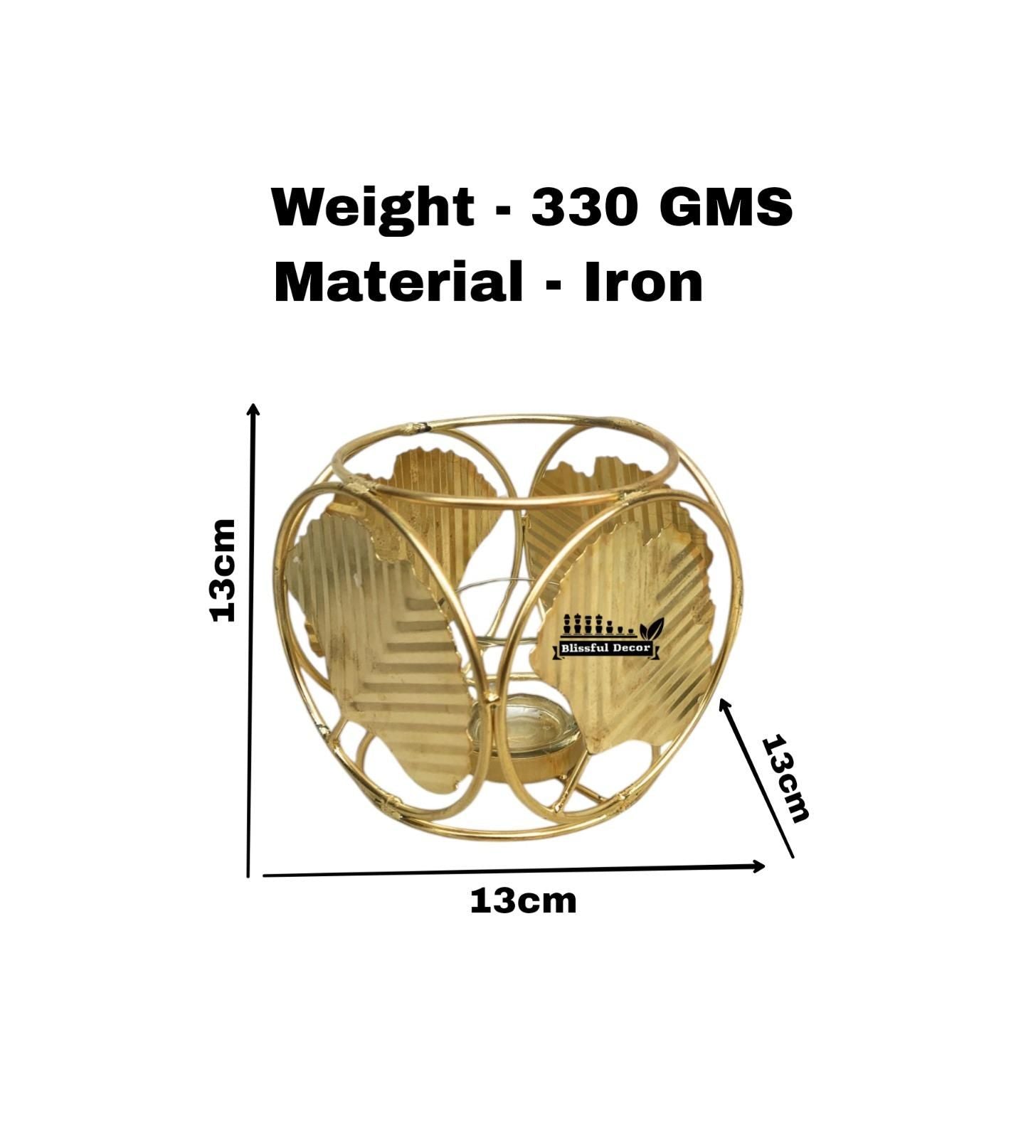 Product Name: Leaf 4 Tea Light (Pack of 1)Package Contains: It has 1 Pcs Leaf 4 Tea LightMaterial : MetalProduct Dimension (LXBXH): 8.5L x 8.5W x 15H cmCombo Pack: Pack of 1Weight: 407 gmsAdditional Information: Beautiful 4-leaf decorative tealight holder crafted from iron with an elegant gold finish, perfect for festive occasions.Suitable for various occasions including Diwali celebrations, Christmas, New Year festivities, and anniversary decorations.